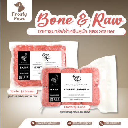 Bone and Raw สูตร Starter เหมาะสำหรับสุนัขที่เปลี่ยนจากอาหารเม็ดหรืออาหารปรุงสุก ให้สารอาหารครบถ้วนและช่วยให้ระบบย่อยอาหารทำงานอย่างสมดุลก่อนเปลี่ยนไปสูตรอื่น